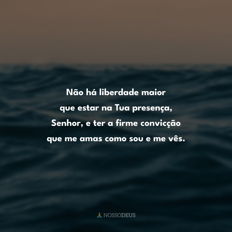 Não há liberdade maior que estar na Tua presença, Senhor, e ter a firme convicção que me amas como sou e me vês. Quero depositar aqui a Teus pés tudo o que me aprisiona e tem ocupado o Teu lugar em meu coração. Somente atado ao Teu amor é que sou livre.