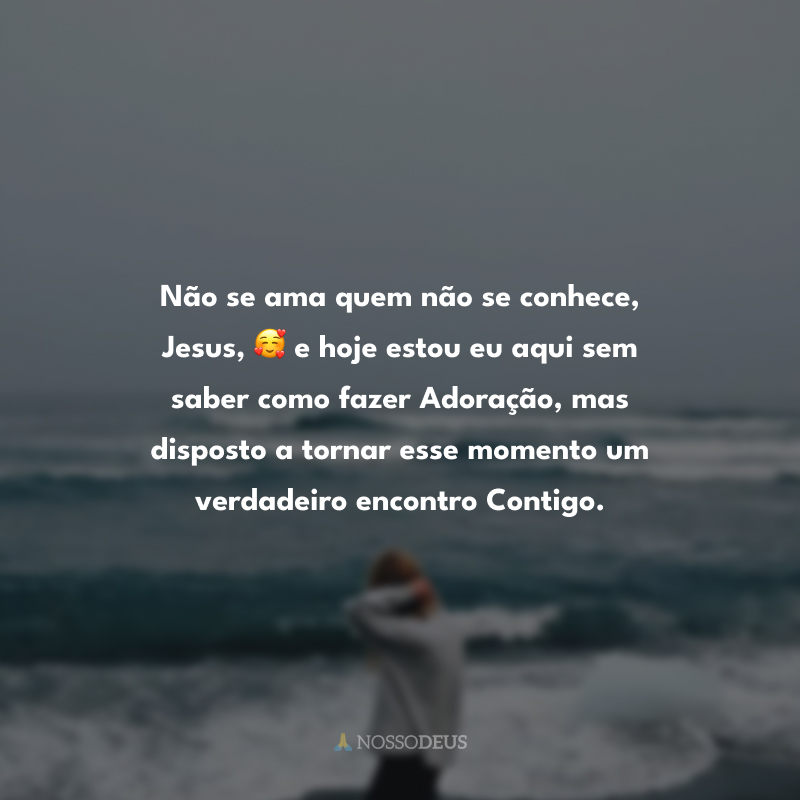 Não se ama quem não se conhece, Jesus, 🥰 e hoje estou eu aqui sem saber como fazer Adoração, mas disposto a tornar esse momento um verdadeiro encontro Contigo. Deixa-me saber quem és para que eu jamais me afaste de Ti 🙏 e faça de cada ato da minha vida uma Adoração.