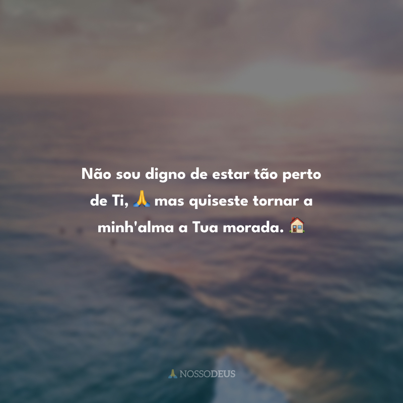 Não sou digno de estar tão perto de Ti,🙏mas quiseste tornar a minh'alma a Tua morada. 🏠Então, faça o Teu querer, reconstrói essas ruínas para que eu seja mais do que um lar para Ti, mas verdadeiro templo 💒 a Te adorar a todo o momento.