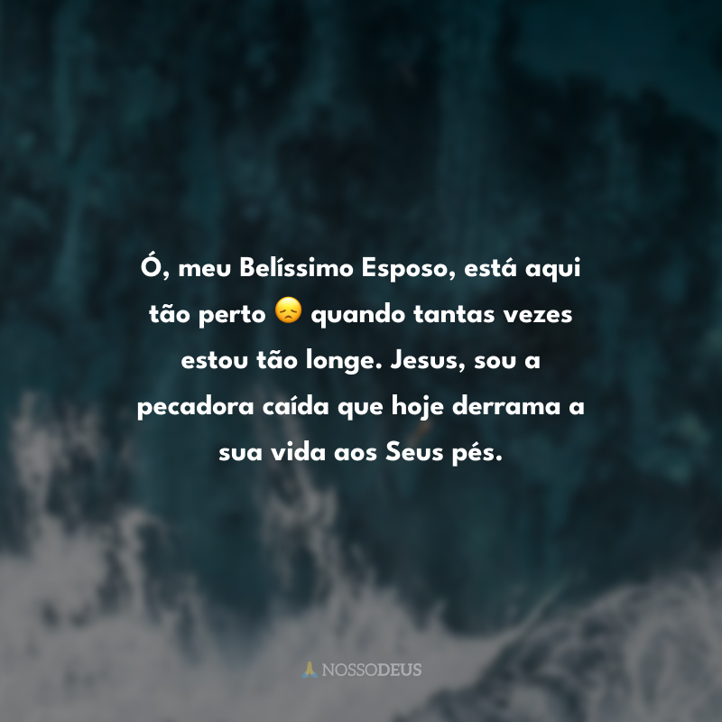 Ó, meu Belíssimo Esposo, está aqui tão perto 😞 quando tantas vezes estou tão longe. Jesus, sou a pecadora caída que hoje derrama a sua vida aos Seus pés. Reescreve minha história, ✍️ Senhor, assim como fizeste outrora com ela e, assim, seremos um de agora em diante.