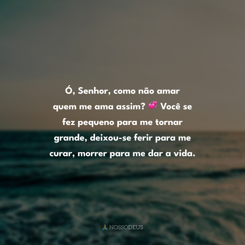 Ó, Senhor, como não amar quem me ama assim?💞 Você se fez pequeno para me tornar grande, deixou-se ferir para me curar, morrer para me dar a vida. Reconheço tudo o que fez por mim e hoje desejo me unir à Sua vontade, 🛐 pois sei que tudo o que me pede é sempre para o meu bem.