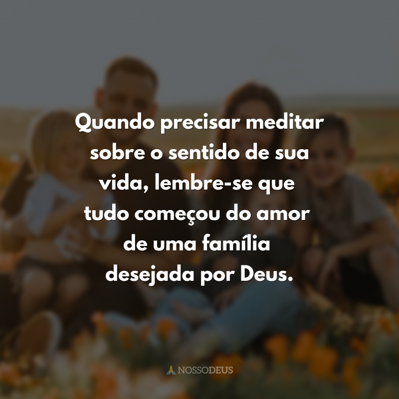 Quando precisar meditar sobre o sentido de sua vida, lembre-se que tudo começou do amor de uma família desejada por Deus.