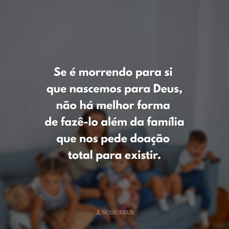 Se é morrendo para si que nascemos para Deus, não há melhor forma de fazê-lo além da família que nos pede doação total para existir.