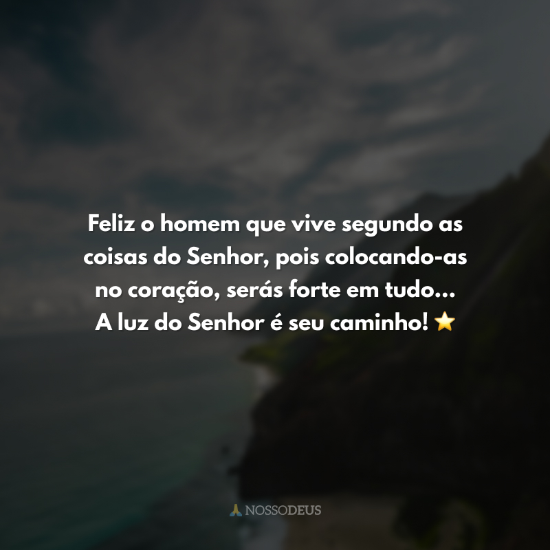 Feliz o homem que vive segundo as coisas do Senhor, pois colocando-as no coração, serás forte em tudo… A luz do Senhor é seu caminho! ⭐