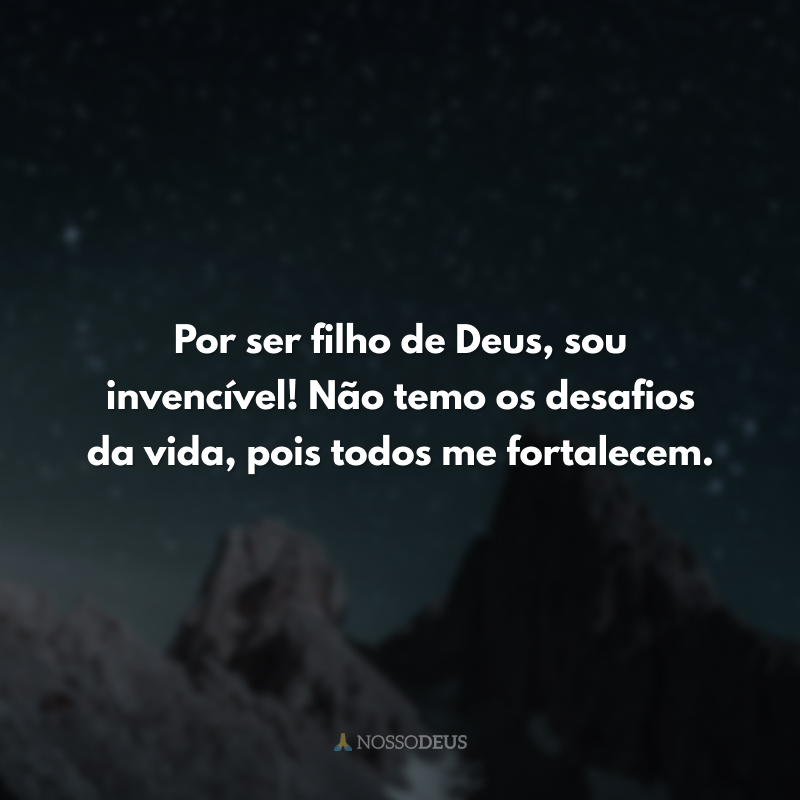 Por ser filho de Deus, sou invencível! Não temo os desafios da vida, pois todos me fortalecem.