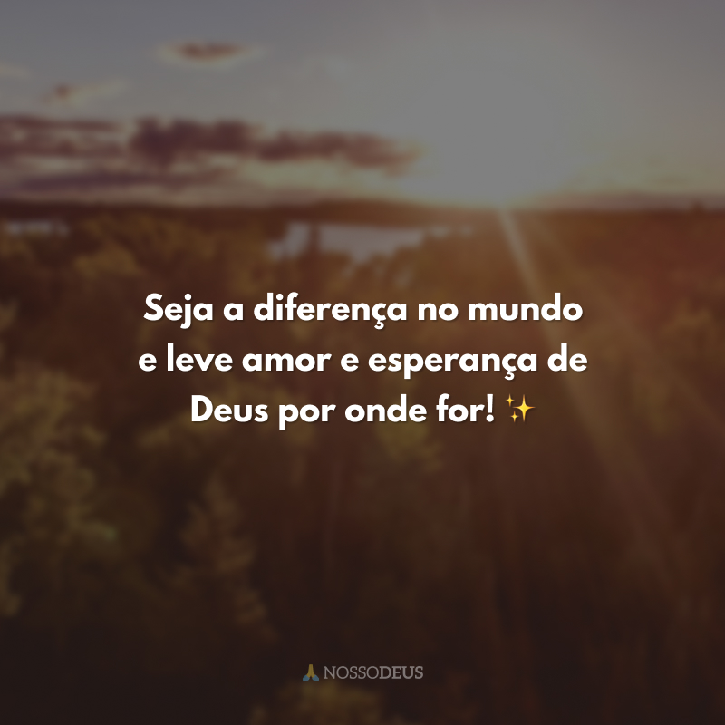 Seja a diferença no mundo e leve amor e esperança de Deus por onde for! ✨