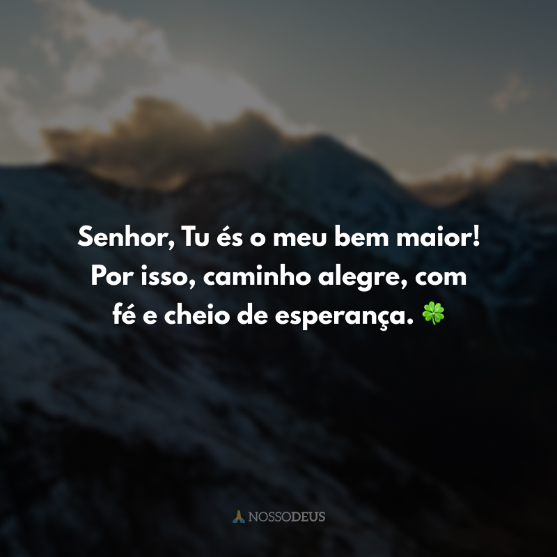 Senhor, Tu és o meu bem maior! Por isso, caminho alegre, com fé e cheio de esperança. 🍀