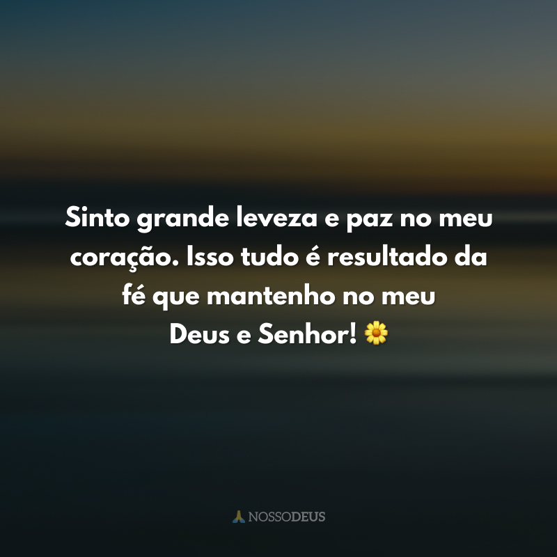 Sinto grande leveza e paz no meu coração. Isso tudo é resultado da fé que mantenho no meu Deus e Senhor! 🌼