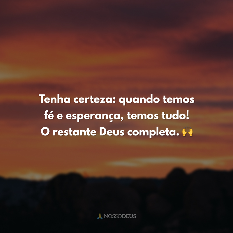 Tenha certeza: quando temos fé e esperança, temos tudo! O restante Deus completa. 🙌