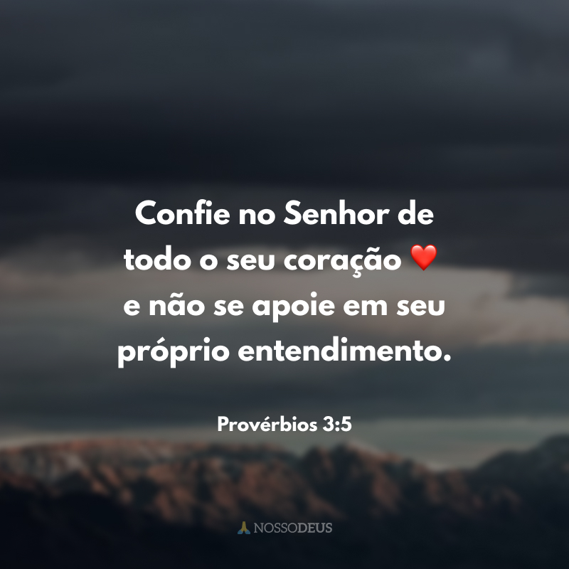 Confie no Senhor de todo o seu coração ❤️️ e não se apoie em seu próprio entendimento.