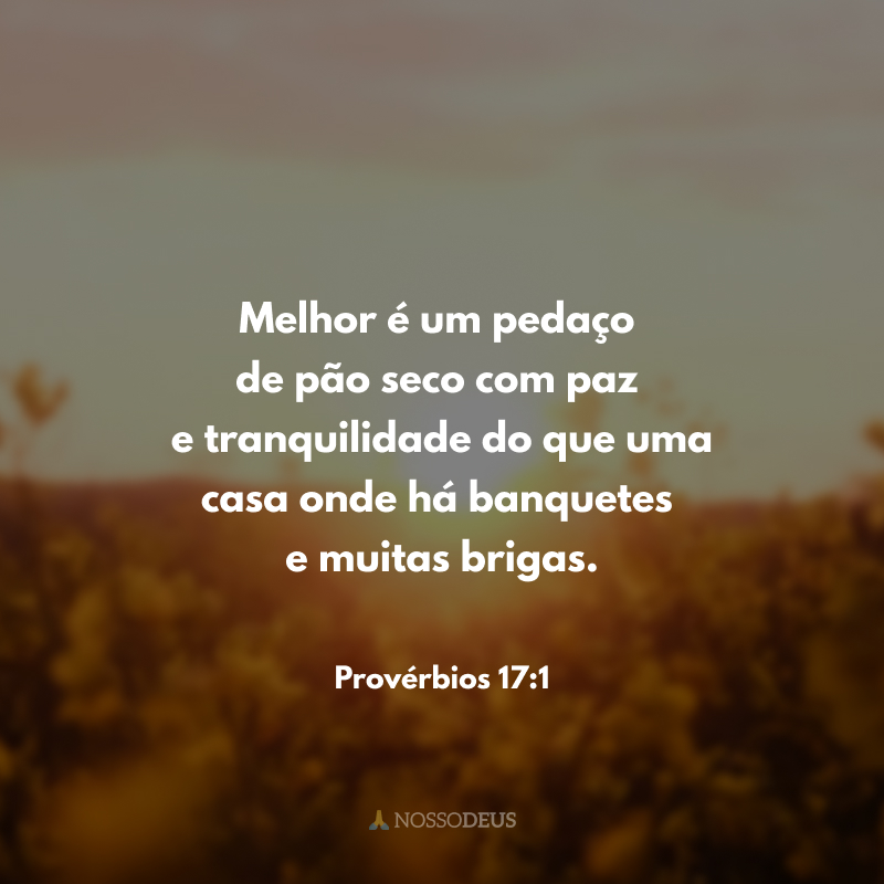 Melhor é um pedaço de pão seco com paz e tranquilidade do que uma casa onde há banquetes e muitas brigas.