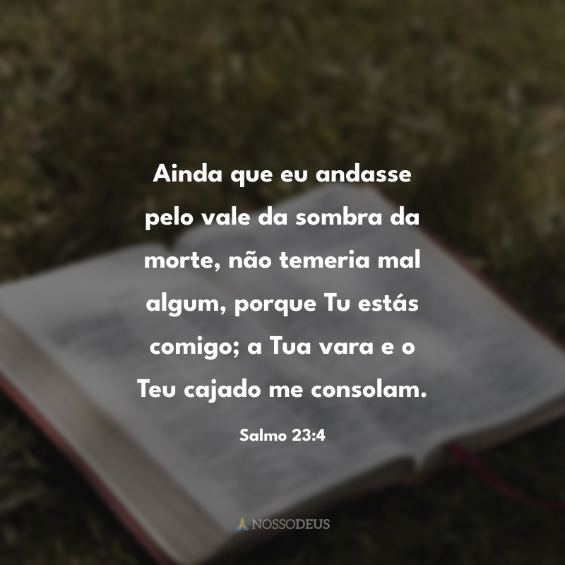 Ainda que eu andasse pelo vale da sombra da morte, não temeria mal algum, porque Tu estás comigo; a Tua vara e o Teu cajado me consolam.