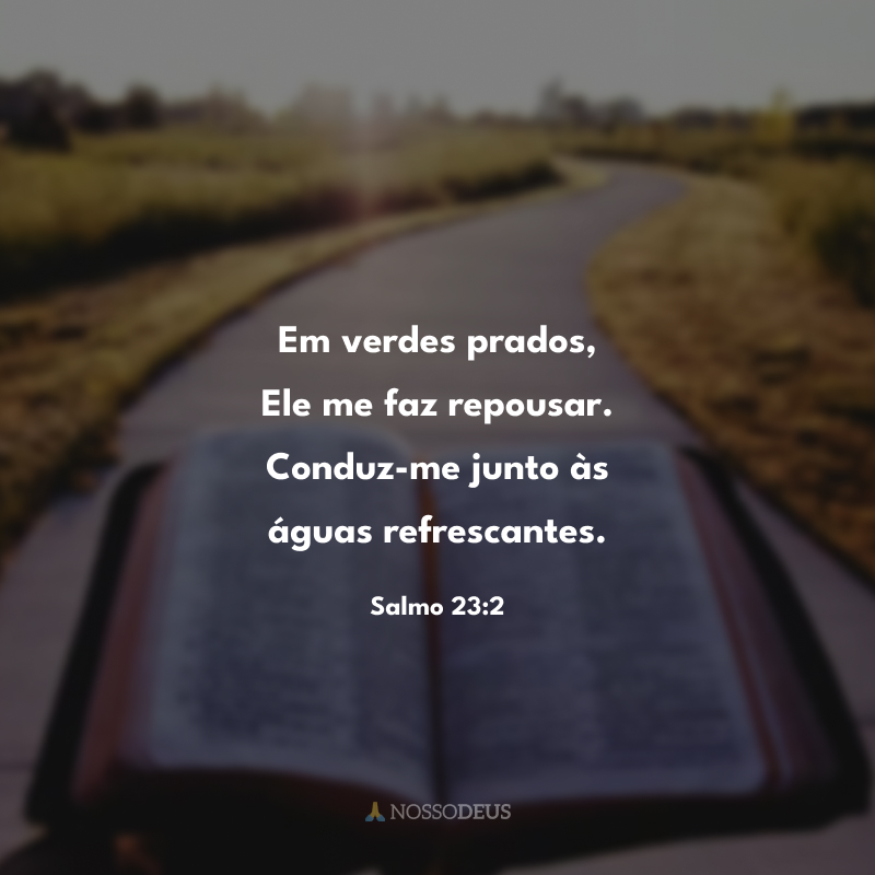 Em verdes prados, Ele me faz repousar. Conduz-me junto às águas refrescantes.