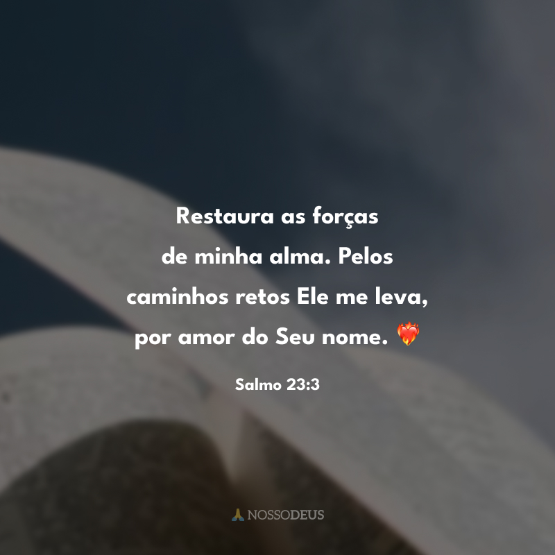 Restaura as forças de minha alma. Pelos caminhos retos Ele me leva, por amor do Seu nome. ❤️🔥