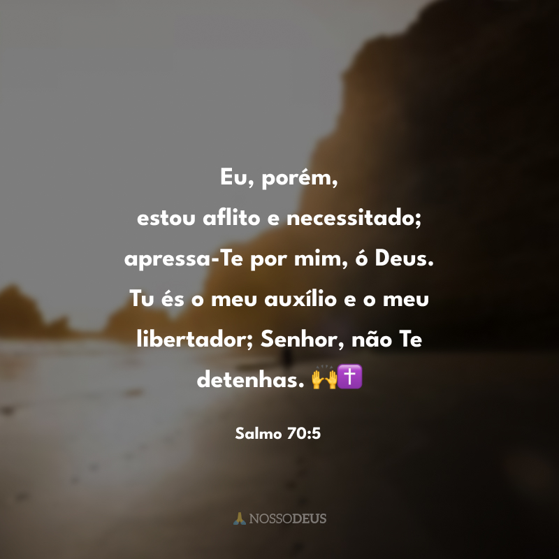 Eu, porém, estou aflito e necessitado; apressa-Te por mim, ó Deus. Tu és o meu auxílio e o meu libertador; Senhor, não Te detenhas. 🙌✝️