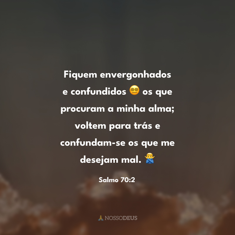 Fiquem envergonhados e confundidos 😵💫 os que procuram a minha alma; voltem para trás e confundam-se os que me desejam mal. 🙅♂️