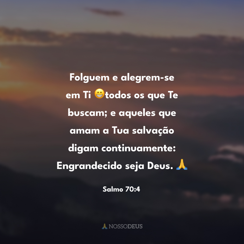 Folguem e alegrem-se em Ti 😁todos os que Te buscam; e aqueles que amam a Tua salvação digam continuamente: Engrandecido seja Deus. 🙏