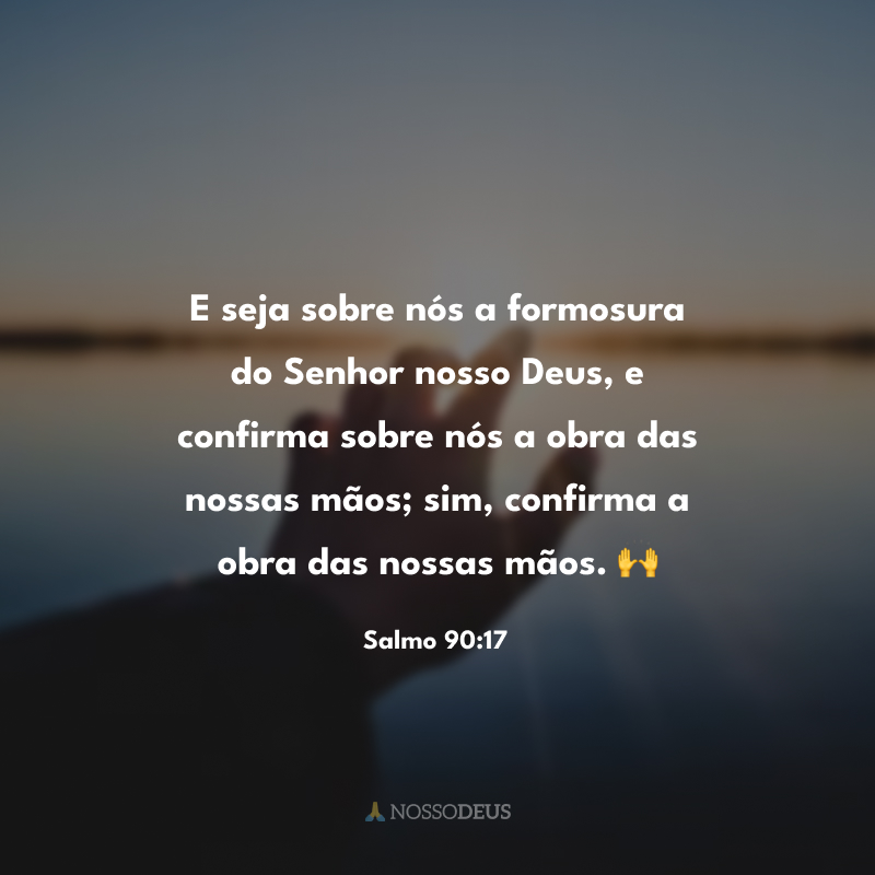 E seja sobre nós a formosura do Senhor nosso Deus, e confirma sobre nós a obra das nossas mãos; sim, confirma a obra das nossas mãos. 🙌