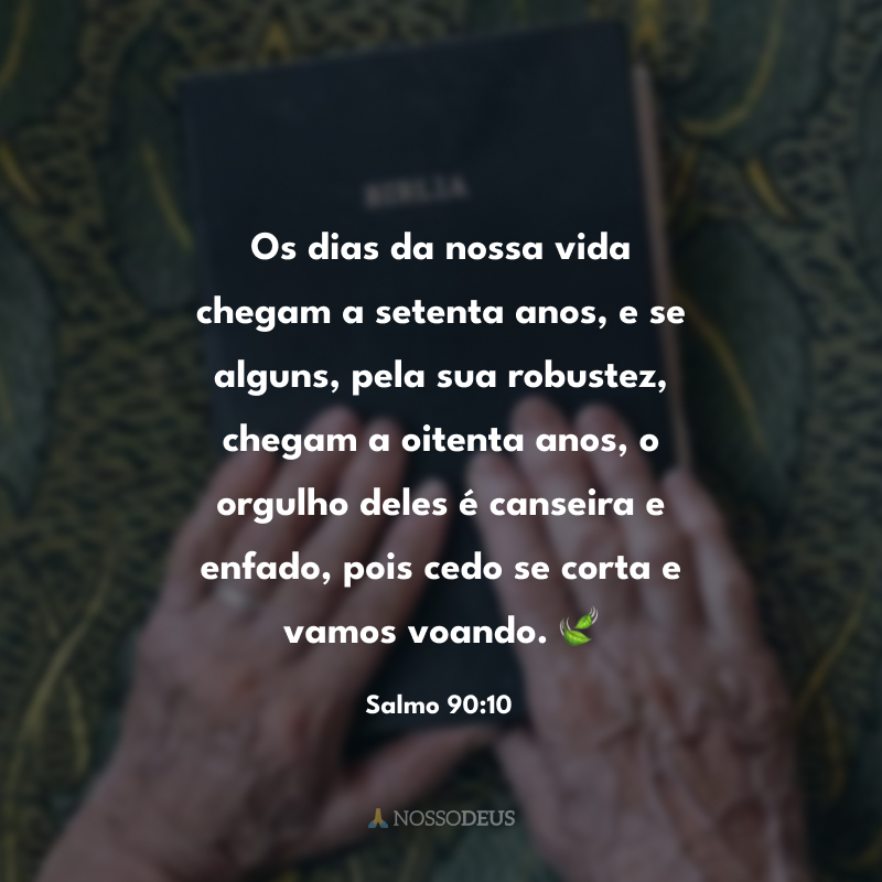 Os dias da nossa vida chegam a setenta anos, e se alguns, pela sua robustez, chegam a oitenta anos, o orgulho deles é canseira e enfado, pois cedo se corta e vamos voando. 🍃