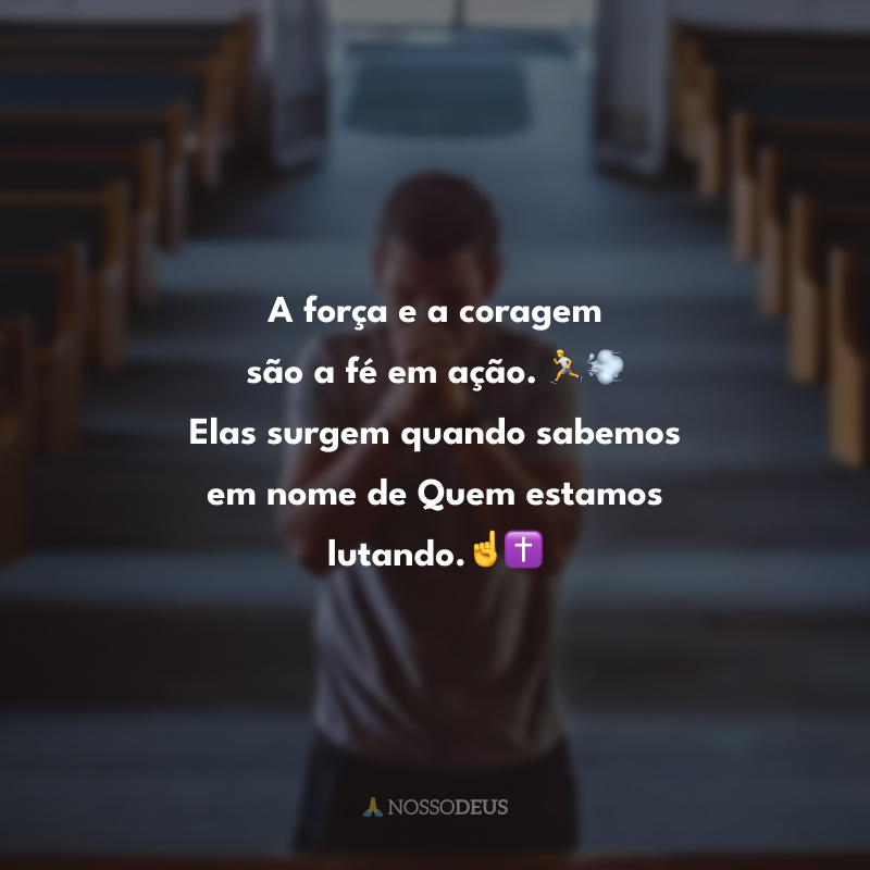 A força e a coragem são a fé em ação. 🏃💨 Elas surgem quando sabemos em nome de Quem estamos lutando.☝️✝