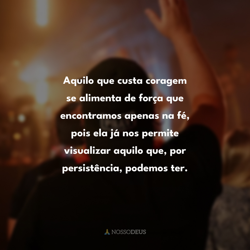 Aquilo que custa coragem se alimenta de força que encontramos apenas na fé, pois ela já nos permite visualizar aquilo que, por persistência, podemos ter.