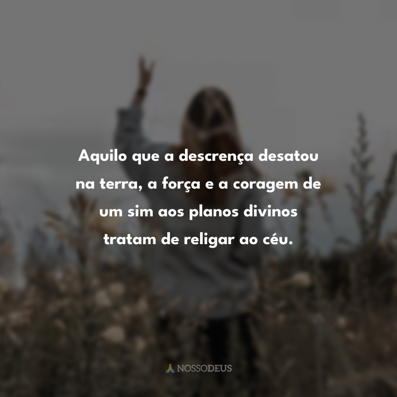 Aquilo que a descrença desatou na terra, a força e a coragem de um sim aos planos divinos tratam de religar ao céu.