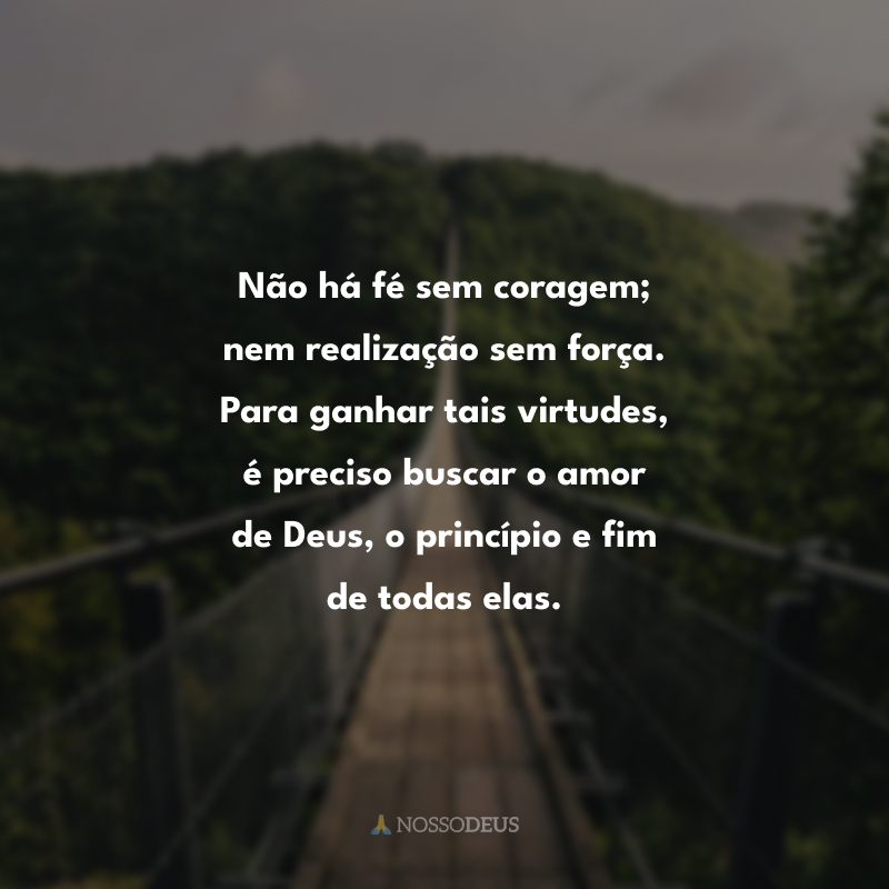 Não há fé sem coragem; nem realização sem força. Para ganhar tais virtudes, é preciso buscar o amor de Deus, o princípio e fim de todas elas.