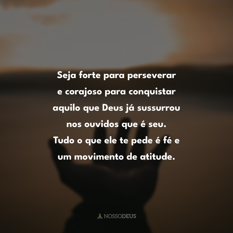 Seja forte para perseverar e corajoso para conquistar aquilo que Deus já sussurrou nos ouvidos que é seu. Tudo o que ele te pede é fé e um movimento de atitude.