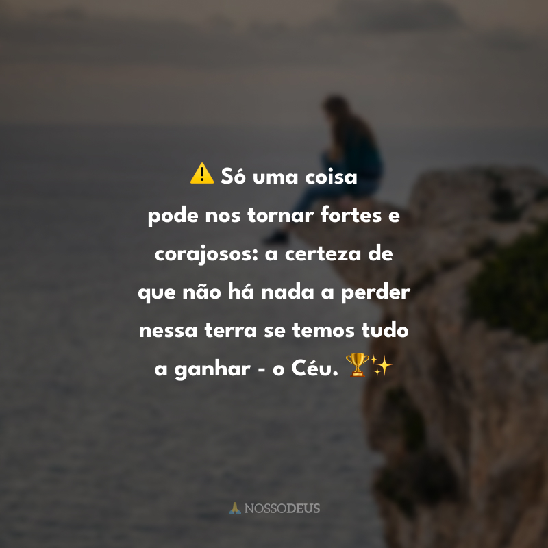 ⚠ Só uma coisa pode nos tornar fortes e corajosos: a certeza de que não há nada a perder nessa terra se temos tudo a ganhar - o Céu. 🏆✨