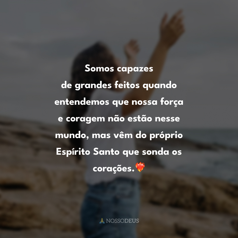 Somos capazes de grandes feitos quando entendemos que nossa força e coragem não estão nesse mundo, mas vêm do próprio Espírito Santo que sonda os corações.❤️‍🔥