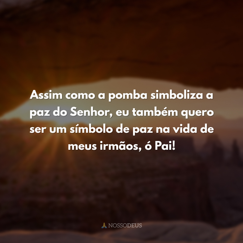 Assim como a pomba simboliza a paz do Senhor, eu também quero ser um símbolo de paz na vida de meus irmãos, ó Pai!