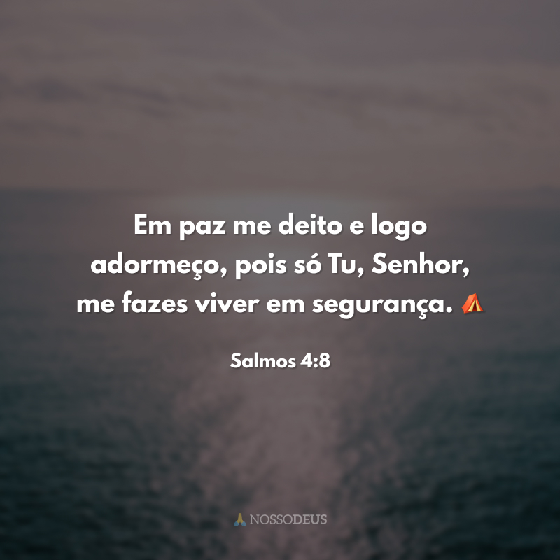 Em paz me deito e logo adormeço, pois só Tu, Senhor, me fazes viver em segurança. ⛺