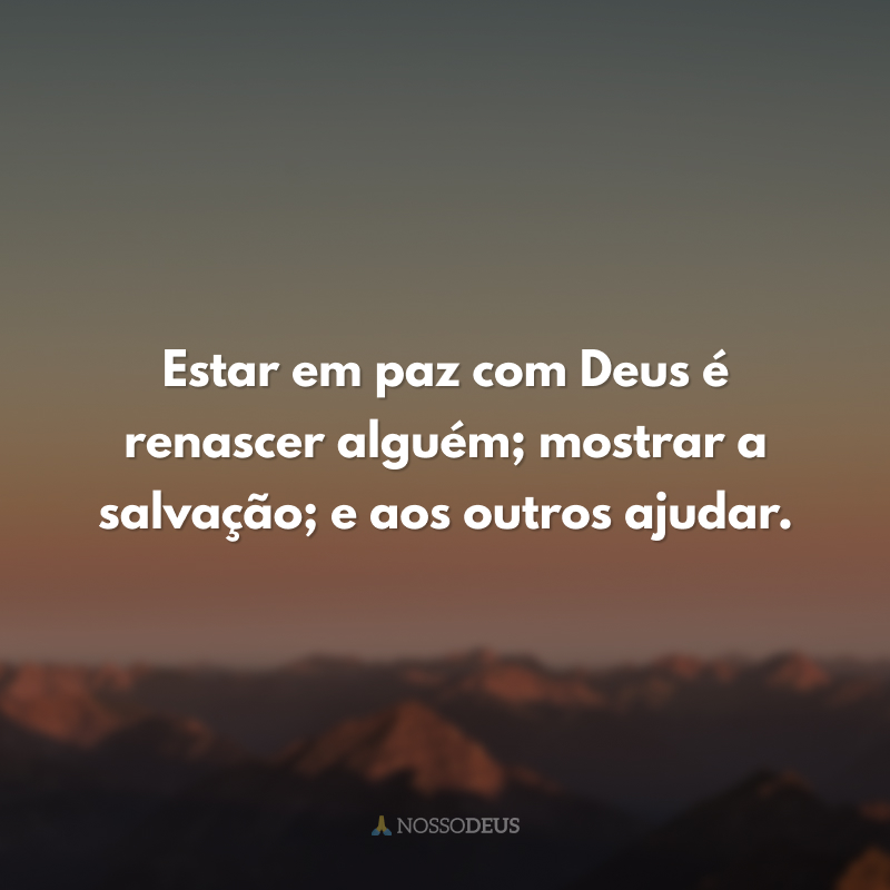 Estar em paz com Deus é renascer alguém; mostrar a salvação; e aos outros ajudar.