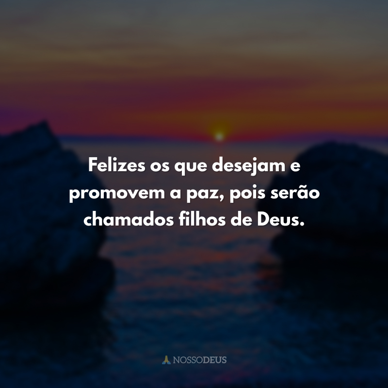 Felizes os que desejam e promovem a paz, pois serão chamados filhos de Deus.