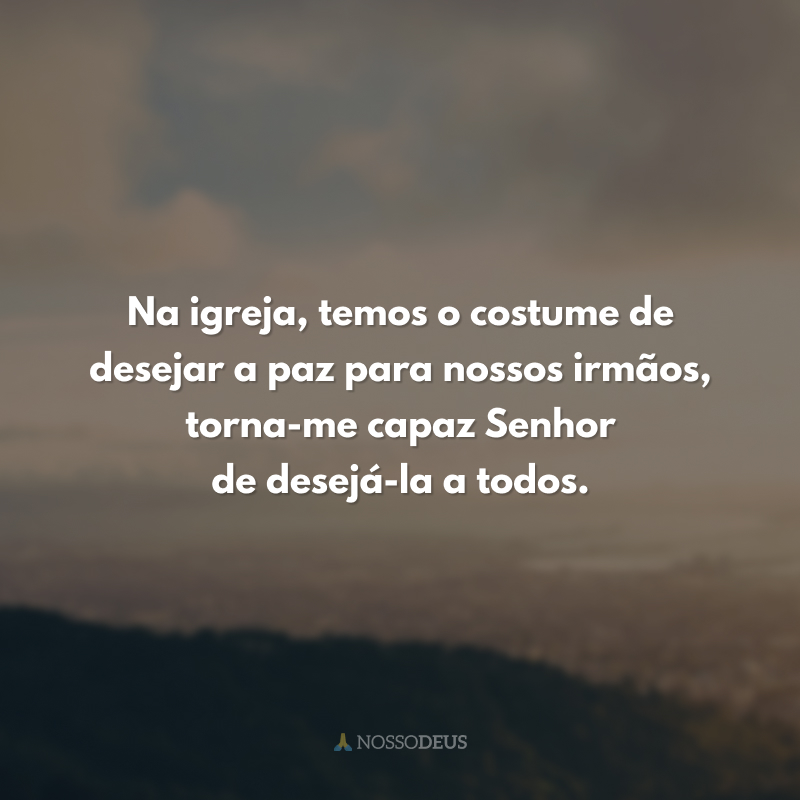 Na igreja, temos o costume de desejar a paz para nossos irmãos, torna-me capaz Senhor de desejá-la a todos.