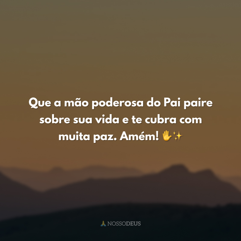 Que a mão poderosa do Pai paire sobre sua vida e te cubra com muita paz. Amém! ✋✨