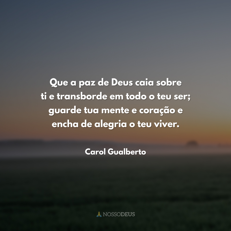 Que a paz de Deus caia sobre ti e transborde em todo o teu ser; guarde tua mente e coração e encha de alegria o teu viver.