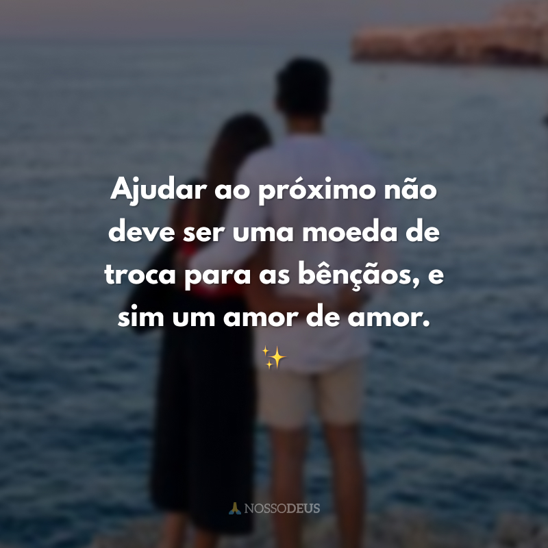 Ajudar ao próximo não deve ser uma moeda de troca para as bênçãos, e sim um amor de amor. ✨