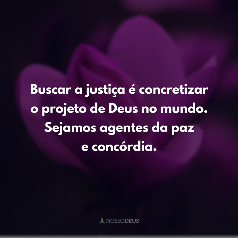 Buscar a justiça é concretizar o projeto de Deus no mundo. Sejamos agentes da paz e concórdia.