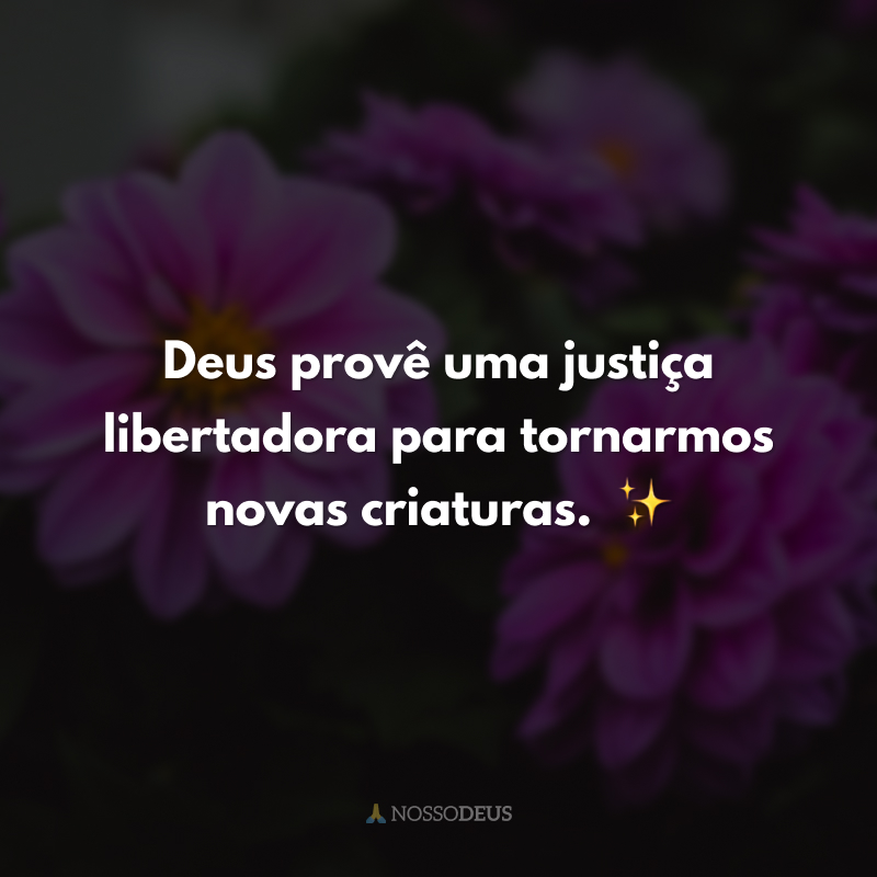 Deus provê uma justiça libertadora para tornarmos novas criaturas.  ✨
