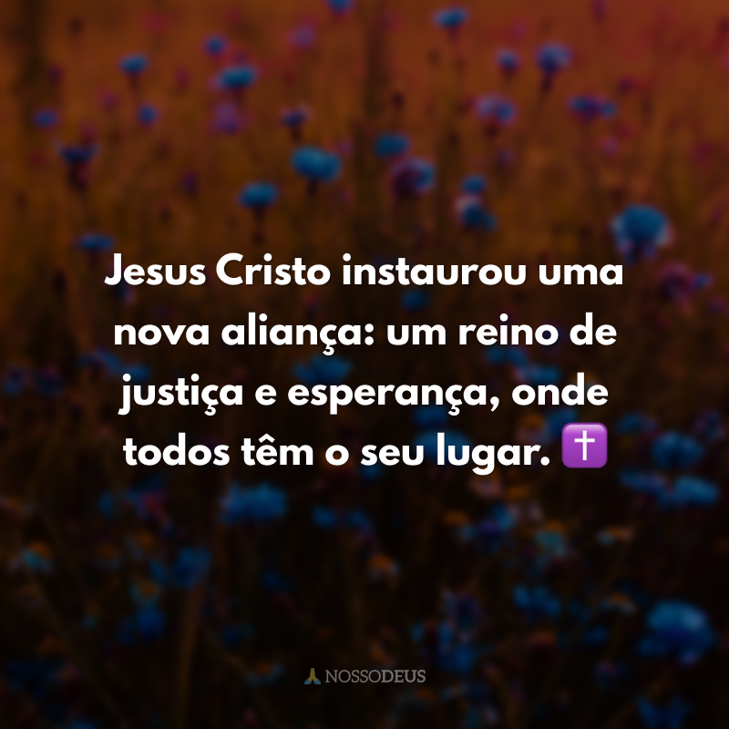 Jesus Cristo instaurou uma nova aliança: um reino de justiça e esperança, onde todos têm o seu lugar. ✝