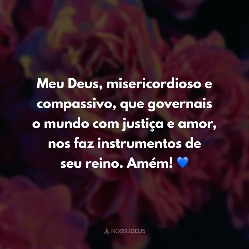 Meu Deus, misericordioso e compassivo, que governais o mundo com justiça e amor, nos faz instrumentos de seu reino. Amém! 💙