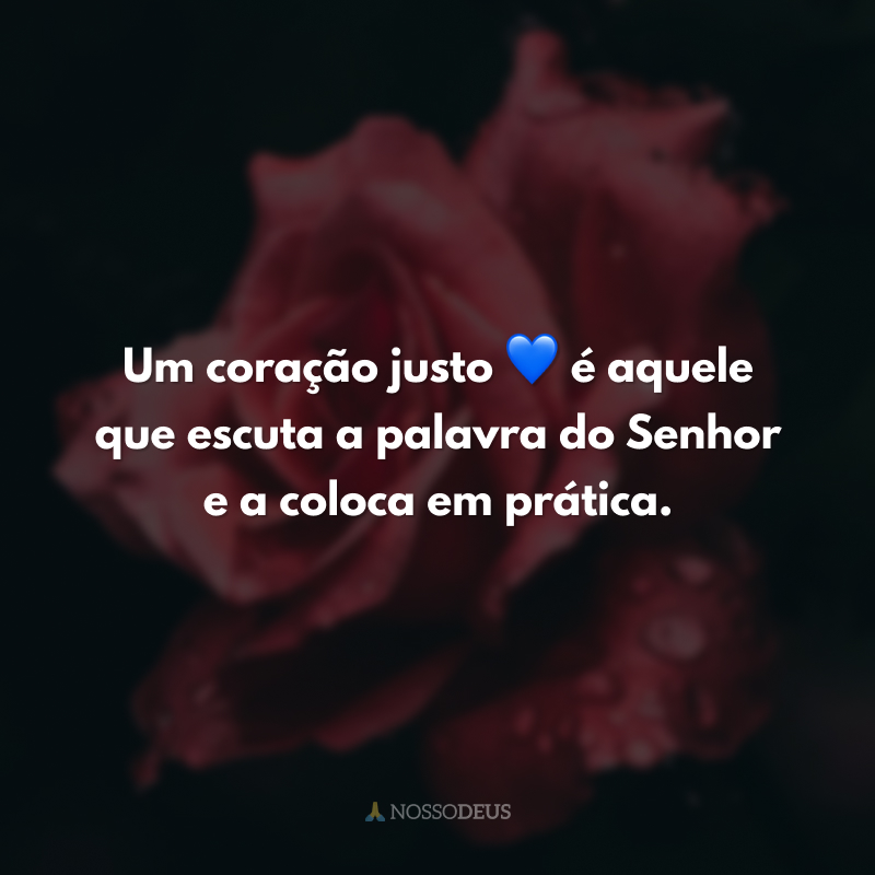 Um coração justo 💙 é aquele que escuta a palavra do Senhor e a coloca em prática.