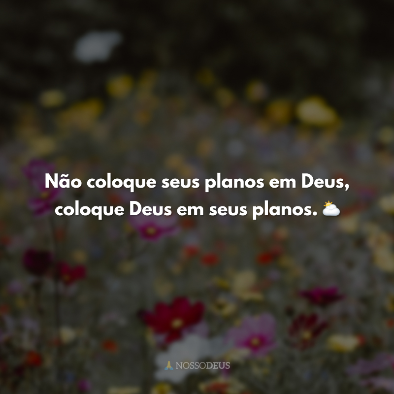 Não coloque seus planos em Deus, coloque Deus em seus planos. ⛅