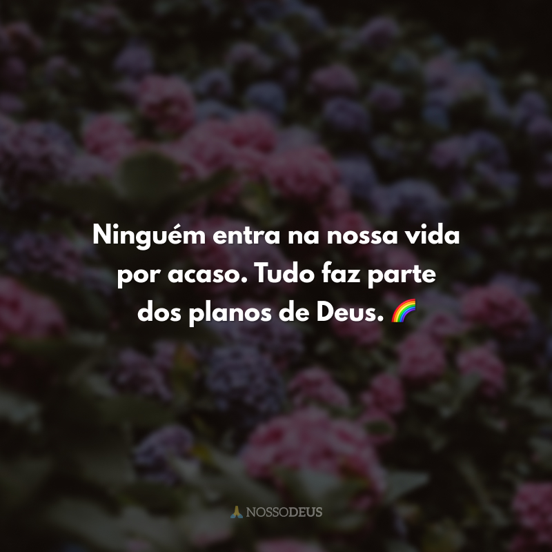 Ninguém entra na nossa vida por acaso. Tudo faz parte dos planos de Deus. 🌈