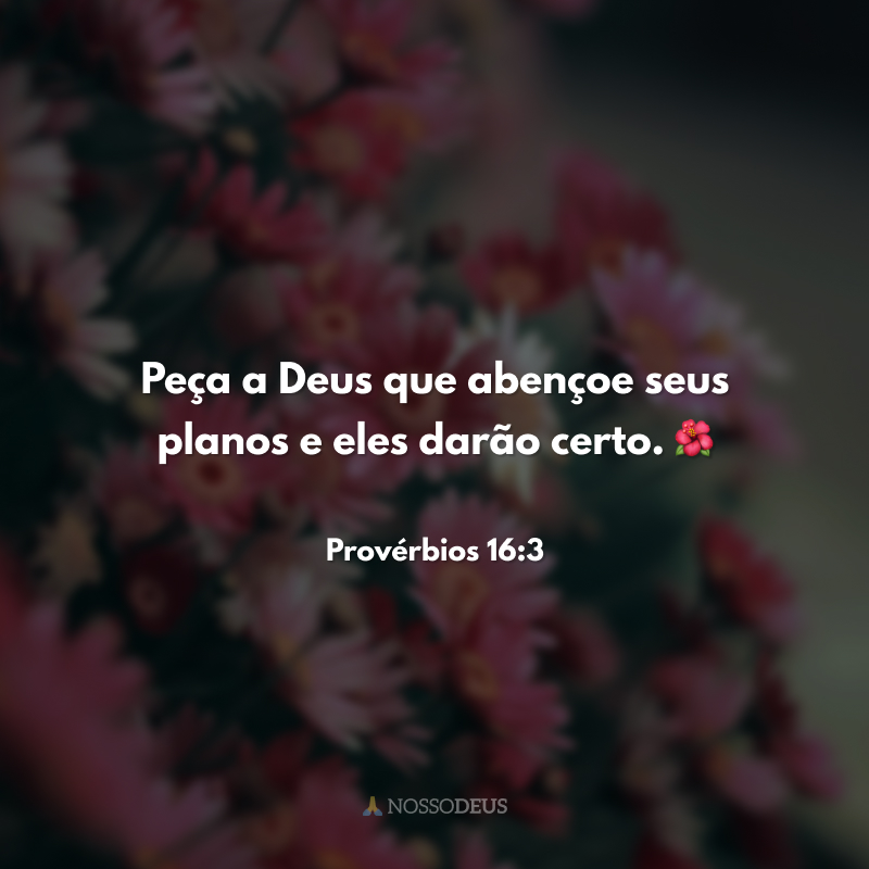 Peça a Deus que abençoe seus planos e eles darão certo. 🌺