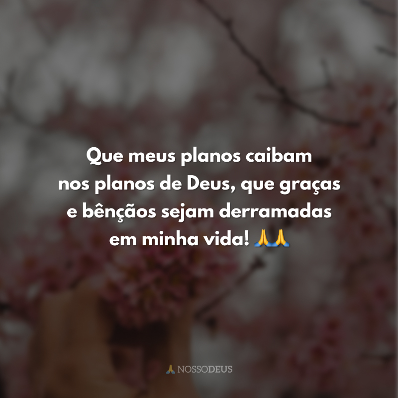 Que meus planos caibam nos planos de Deus, que graças e bênçãos sejam derramadas em minha vida! 🙏🙏