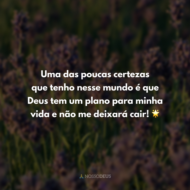 Uma das poucas certezas que tenho nesse mundo é que Deus tem um plano para minha vida e não me deixará cair! 🌟