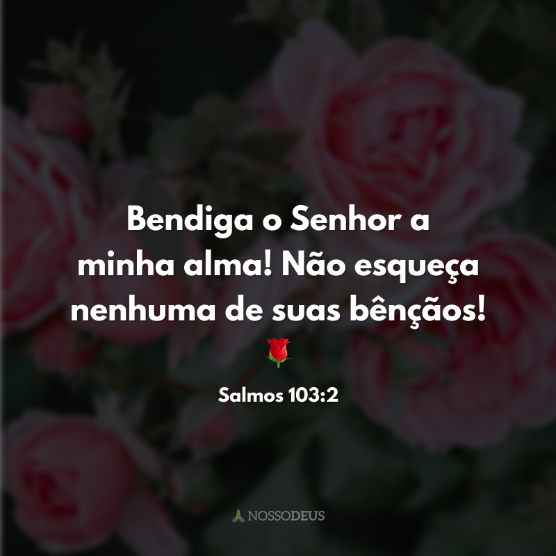 Bendiga o Senhor a minha alma! Não esqueça nenhuma de suas bênçãos! 🌹