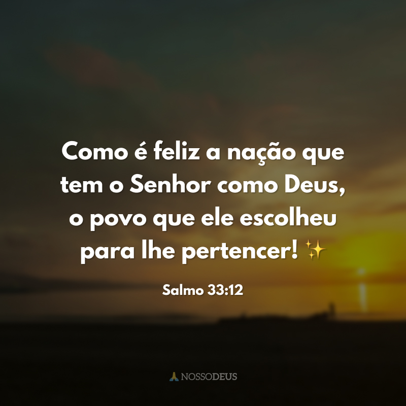 Como é feliz a nação que tem o Senhor como Deus, o povo que ele escolheu para lhe pertencer! ✨